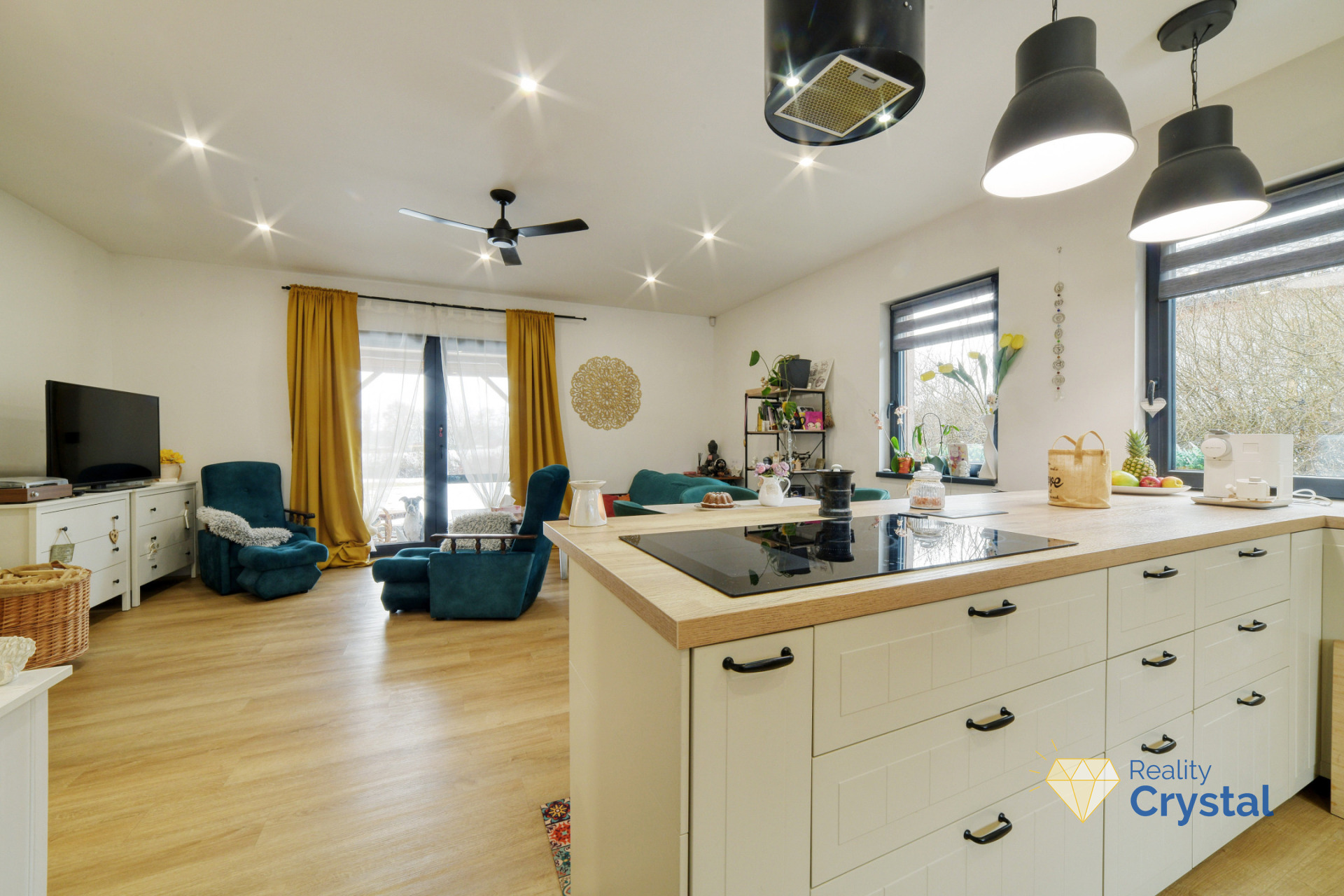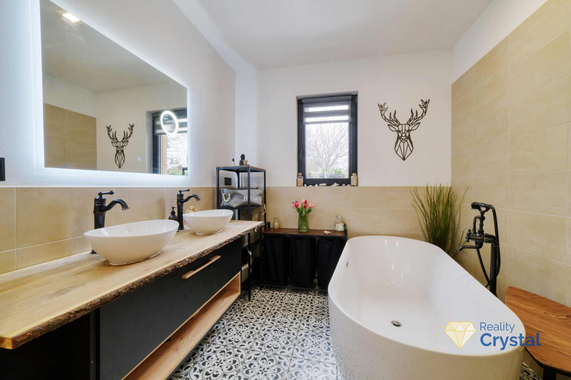 Představuji Vám dům, který se stane zázemím pro všechny vaše rodinné chvíle, který se nachází v obci Chodovská Huť 8km od Lázeňského města Mariánské Lázně. Tato novostavba propojuje klid venkovského prostředí s výhodami blízkosti města. Samostatný dům byl zkolaudován v roce 2021 a spadá do energetické třídy B (velmi úsporná), má dispozici 4+kk a užitnou plochu 110m2. Z obývacího pokoje s kuchyní, který tvoří srdce celé domácnosti, vede francouzské okno na terasu, která skýtá výhled přímo na zahradu a nedaleké lesy a kopce. Tři samostatné pokoje pak nabízí dostatek prostoru a soukromí pro členy Vaší rodiny. Zahradu tvoří velkorysý pozemek o rozloze 2233 m2 – ideální pro dětské hry, rodinné grilování nebo třeba malý sad, který si tu jednou dovysadíte - výsadba již byla zahájena. Dům je navržený tak, aby vám poskytl maximální pohodlí a zároveň šetřil provozní náklady. Jedná se o kvalitní dřevostavbu s vynikající izolací, která udrží příjemné klima po celý rok. Vytápění je řešené krbem a tepelným čerpadlem, teplo jde do podlahového topení. O čerstvý vzduch se postará aktivní rekuperace, která v létě navíc funguje i jako klimatizace. V domě je půda sloužící jako praktické odkladiště pro sezóníí věci a vybavení. Fasáda domu je zateplená a obložená sibiřským modřínem a to pro jeho výborné tepelněizolační vlastnosti a přírodnímu vzhledu. Na zahradě se nachází dva lodní kontejnery, do kterých je zavedená elektřina, sloužící jako úložiště pro kola, lyže a zahradní techniku. Dále je zde altan, který zajišťuje zastření pro zahradní traktůrek. Dům je monitorován kamerovým systémem Jablotron umožňující vzdálenou správu. Voda je z vlastního 80 m vrtu a díky filtraci v domě, voda má kvalitu kojenecké vody, přípojka na obecní řad je na hranici pozemku před domem a dům je připraven, v případě, že se tak rozhodne nový majitel, k připojení. Odpad je veden do ČOV Parkování je přímo na pozemku, kde je pro tyto účely položena zámková dlažba skýtající prostor pro 5 automobilů. Chodovská Huť je malá vesnice v Karlovarském kraji, nedaleko obce Tří Sekery, žije zde okolo 120 obyvatel. Pokud hledáte domov, kde se potká moderní komfort, zdravé bydlení, prostor pro rodinu a kouzlo přírody, tenhle dům v Chodovské Huti je Vaším splněným přáním. Neváhejte a domluvte si osobní prohlídku.